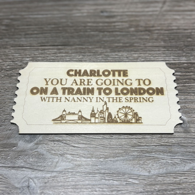 These personalised wooden tickets are a unique and thoughtful keepsake, perfect for revealing a surprise, celebrating a special moment, or gifting something a little different. Each ticket is carefully engraved onto natural wood and can be customised with your own wording, names, or dates.
